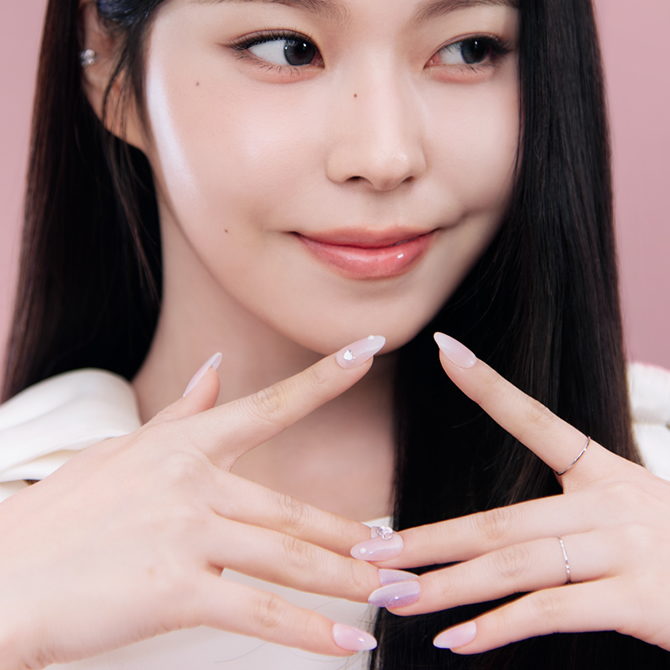 ネイルチップを甘皮のラインに合わせて斜め上方向から軽く押し付けるように貼り、密着するまでしっかり押し付けてください。(甘皮から1mm程度離して貼ってください)付属のファイルでネイルチップの先端を整えて仕上げます。