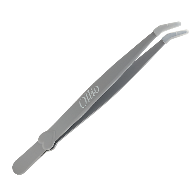 最後にツイーザーでつけまつげ全体を優しく挟み、固定させます。