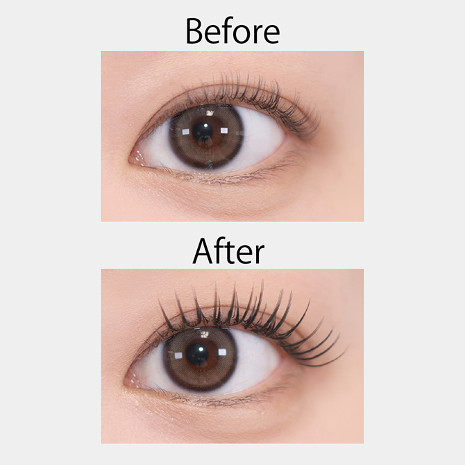 トレーから取り出したつけまつげを自まつげの下から、生え際ラインに沿って付けます。