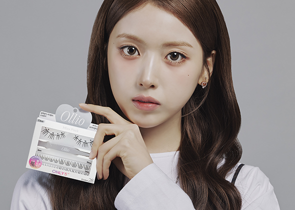 トレーから取り出したつけまつげを自まつげの下から、生え際ラインに沿って付けます。